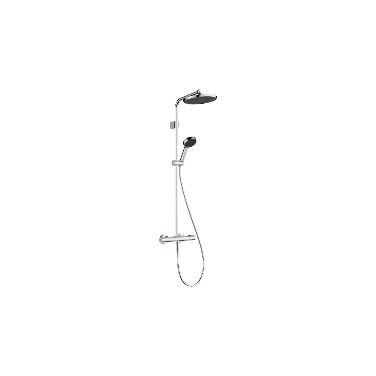 Hansgrohe Activera S 240 dušo sistema (28078000) – komplektinė dušo sistema su viršutiniu dušu (240 mm), rankiniu dušu, stovu, žarna ir termostatu Ecostat Fine Varia. EcoSmart technologija leidžia sumažinti vandens suvartojimą iki 8 l/min, tuo pačiu suteikiant komfortišką dušo patirtį. QuickClean+ silikoninės purkštukų technologijos dėka lengvai pašalinsite kalkių nuosėdas. Ergonomiškas stovas su reguliuojamu rankinio dušo aukščiu ir Select mygtuku leidžia patogiai valdyti srovę bei temperatūrą. Chromuotas paviršius yra atsparus drėgmei ir puikiai dera moderniame vonios kambaryje.