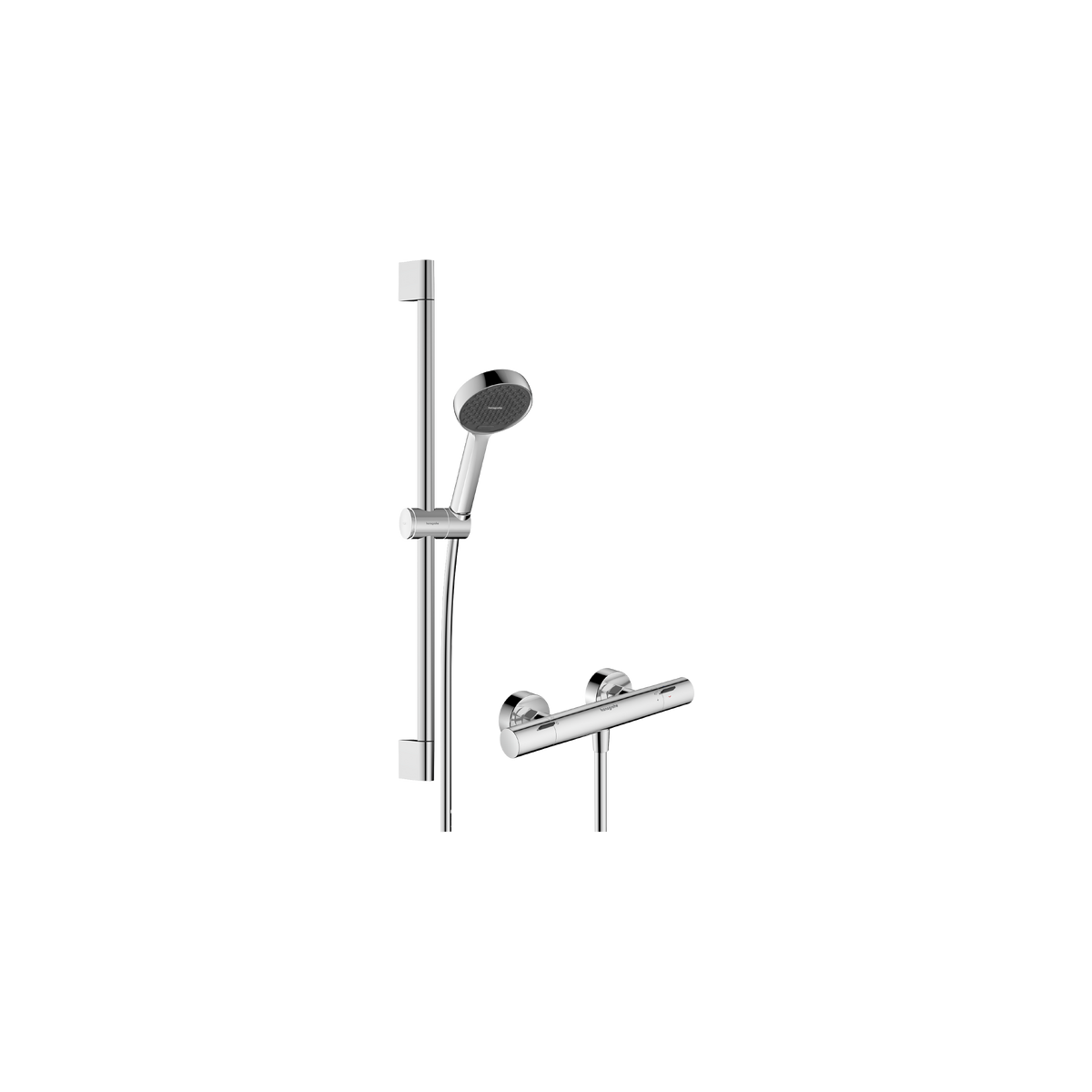 Hansgrohe Activera Select S dušo sistema (28876000) – pilnas sprendimas vonios dušui, įskaitant termostatinį maišytuvą Ecostat Fine, rankinį dušą su dviem srovės režimais (Rain ir ImpactRain), 65 cm dušo stovu ir žarna. EcoSmart technologija sumažina vandens suvartojimą iki 8 l/min be komforto praradimo, o QuickClean+ purkštukai leidžia lengvai pašalinti kalkių nuosėdas. Integruotas termostatas palaiko pastovią temperatūrą, o Select mygtukas leidžia patogiai keisti srovės režimus. Chromuota apdaila suteikia modernią išvaizdą ir atsparumą drėgmei.