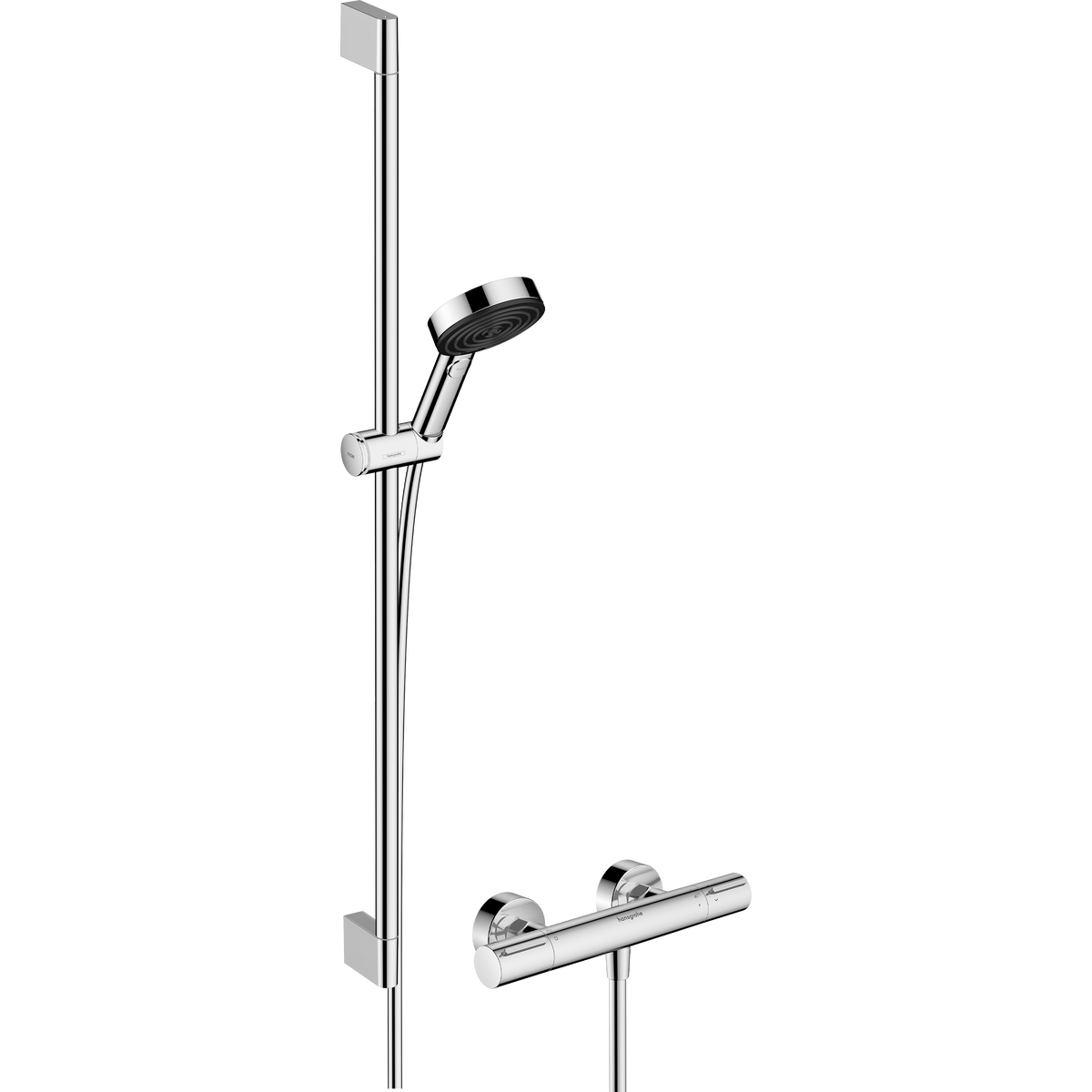 Hansgrohe 24271000 – Pulsify Select S dušo sistema su termostatu Ecostat Element, 90 cm dušo stovu, 160 cm žarna ir 3 purkštukų galvute. Ši moderni sistema sujungia funkcionalumą, komfortą ir vandens taupymą, todėl yra puikus sprendimas tiek namams, tiek komercinėms erdvėms.