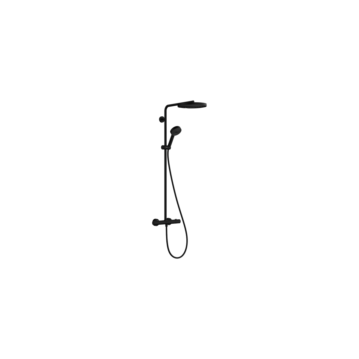 Hansgrohe Pulsify S Puro 24236670 – termostatinė dušo sistema matinė juoda su 260 mm PowderRain lietaus dušu ir 3 srovių rankiniu dušu. Komfortas, saugumas ir stilingas dizainas kiekvienam vonios kambariui.