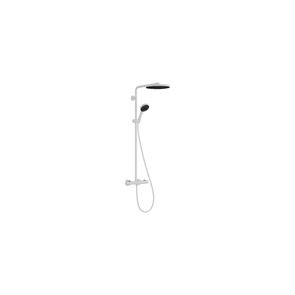 Hansgrohe Pulsify S Puro 24236700 – termostatinė dušo sistema matinė balta su 260 mm PowderRain lietaus dušu ir 3 srovių rankiniu dušu. Komfortas ir stilingas dizainas vonios kambariui.